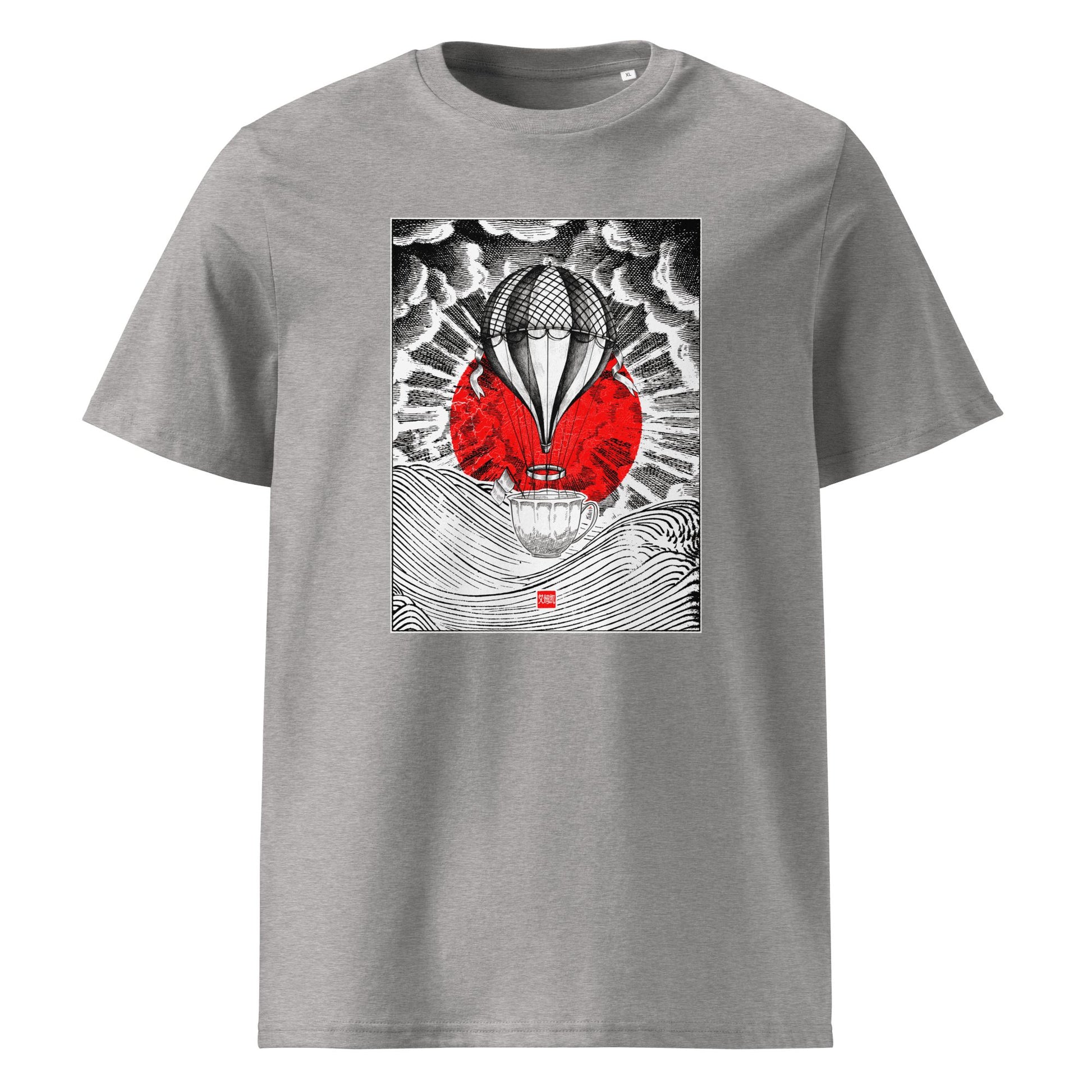 Elevate your style with our Victorian Balloon Sunrise T-shirt! 🎈🌅 Featuring a captivating illustration that blends Victorian elegance with the timeless allure of coffee, this tee is a must-have for anyone with a taste for the extraordinary. With a whimsical hot air balloon, adorned with a cup of coffee in Victorian style, floating gracefully over waves inspired by woodcuts from the Meiji era by Mori Yuzan, it's a visual masterpiece that's sure to turn heads wherever you go. Made from soft, comfortable cotton and available in sizes to fit every adventurer, it's the perfect attire for exploring new horizons or simply enjoying your favorite brew. Wear it proudly and let your imagination take flight. Join the journey – get yours today! 🎩☕️ #coffeeshima