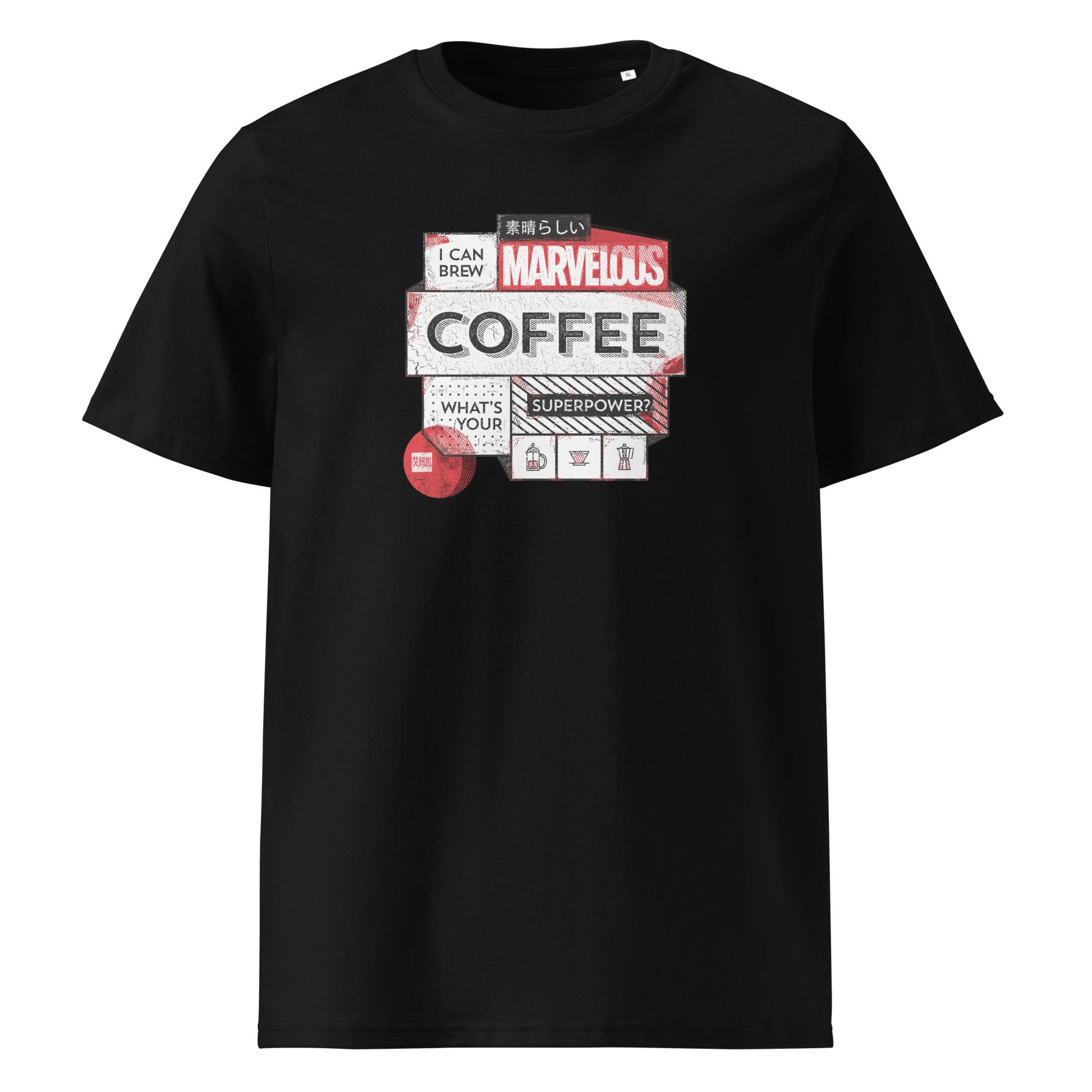 Unleash your inner superhero of the brew with our 'I Can Brew Marvelous Coffee, What's Your Superpower?' T-shirt! 💥☕ Channel your coffee-concocting prowess in true comic book style, with bold lettering that's as powerful as your favorite espresso shot. Whether you're a latte lover, a cold brew crusader, or a pour-over protagonist, this tee is your ultimate uniform for caffeinated conquests. Don it proudly and let the world know: you're here to save the day, one cup at a time! Grab yours now and brew up some supercharged style. ☕🦸♂️ #coffeeshima